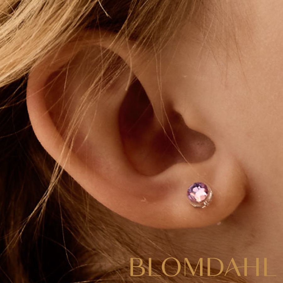 アレルギー対応ピアス(アレルギーフリーピアス)。皮膚の専門家と共同開発したブロムダールのピアスは、アレルギー対応(アレルギーフリー)の肌に優しいピアスです。ニッケルアレルギーや金属アレルギーでお悩みの方にも、安心してお使いいただけます。手術用の縫合糸で使用されているポリアミド製で厚生労働省承認の医療用プラスチックです。宝石はスワロフスキー社のイミテーションジュエリーを使用しています。キャッチはプラスチック製。衛生的なクリーンパックにてお届けします。