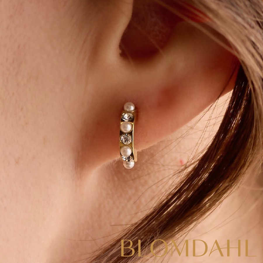 アレルギー対応ピアス(アレルギーフリーピアス)。皮膚の専門家と共同開発したブロムダールのピアスは、アレルギー対応(アレルギーフリー)の肌に優しいピアスです。ニッケルアレルギーや金属アレルギーでお悩みの方にも、安心してお使いいただけます。肌に触れない飾り上面と側面にのみPVDコーティングを施しています。キャッチは純チタン製です。衛生的なクリーンパックにてお届けします。
