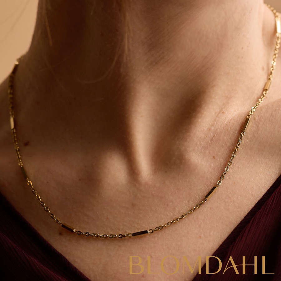 アレルギー対応ネックレス(アレルギーフリーネックレス)。チェーンとペンダントを肌に優しいセラッミクコーティングで金色にコーティングしました。皮膚科専門医と協議して開発したコーティングです。材料はステンレス鋼(スチール)316Lで、これは高品質の外科用鋼としても知られており、医療目的で使用されています。肌に優しい装飾コーティングは、コーティングを施していない同じ部品と比較してニッケル漏れが300倍低減されます。外国製のため、引輪の部分が左側になります。(トップとチェーンがはずれるので、右側にすることも可能)